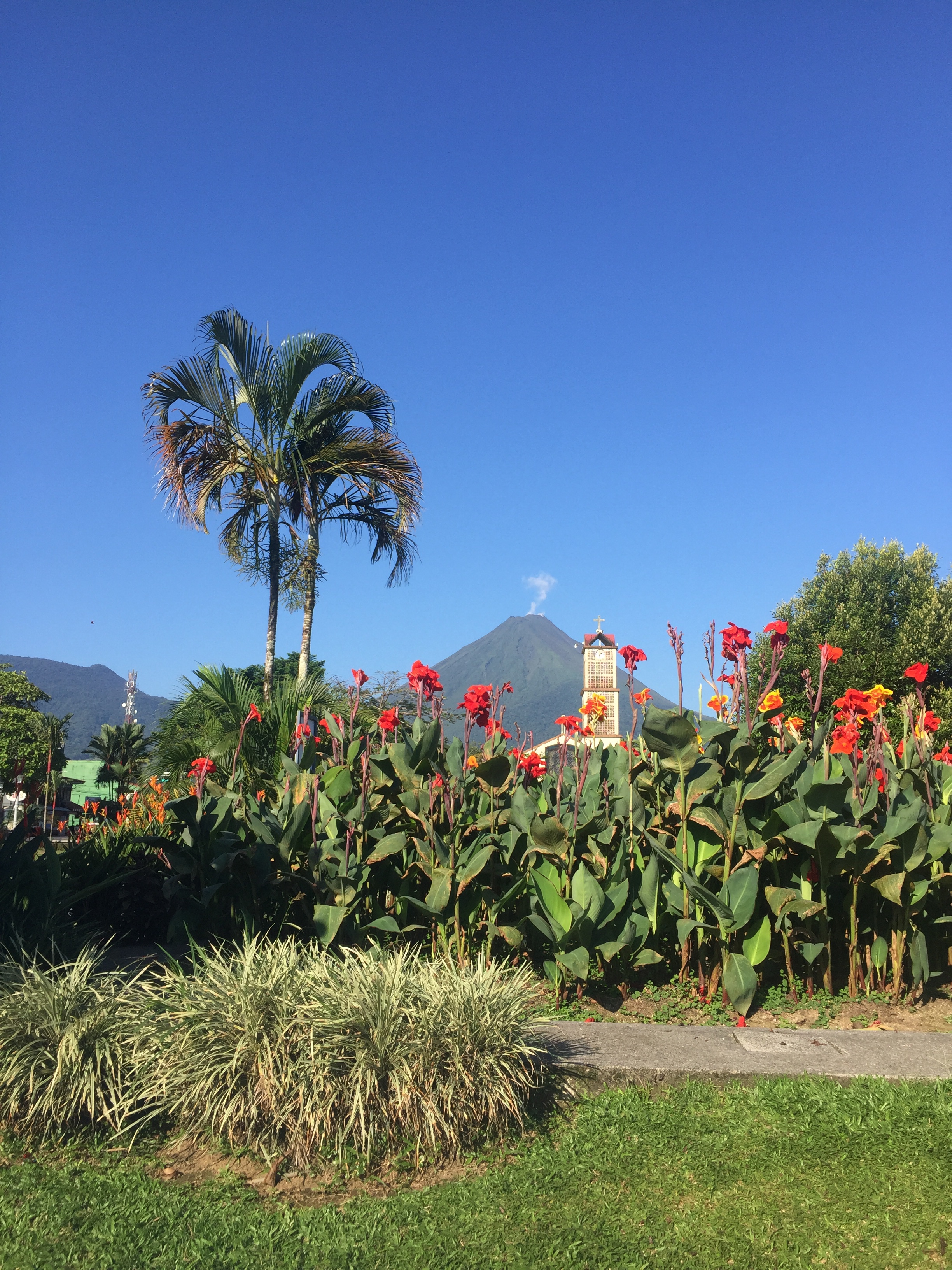 Raus aus der gruseligen Hauptstadt San José, hier war tatsächlich nur das Hostel in einem Vorort echt toll, raus ins Grüne. Genauer gesagt ging es mit dem Bus 4 Stunden in Richtung Norden nach La Fortuna, ein Vulkangebiet. Der Vulkan Arenal begrüßte mich schon bei Unterkunft, leider noch etwas wolkenverhangen. Nach der Ankunft ging‘s dann direkt zur ersten „Attraktion“ dem Wasserfall von La Fortuna, gute 1,5 Stunden ging‘s teilweise gut bergauf (ich stelle fest meine Kondition ist echt im Arsch…) um dann festzustellen, dass der Wasserfall schon fast geschlossen hatte… na ja, wird auf der Reise wohl so einige geben 😉